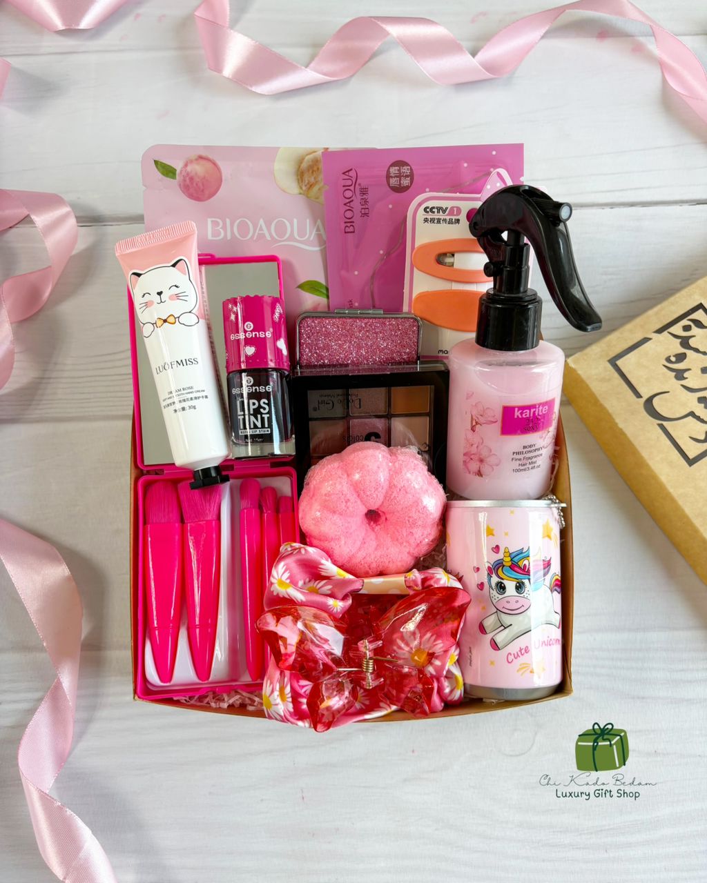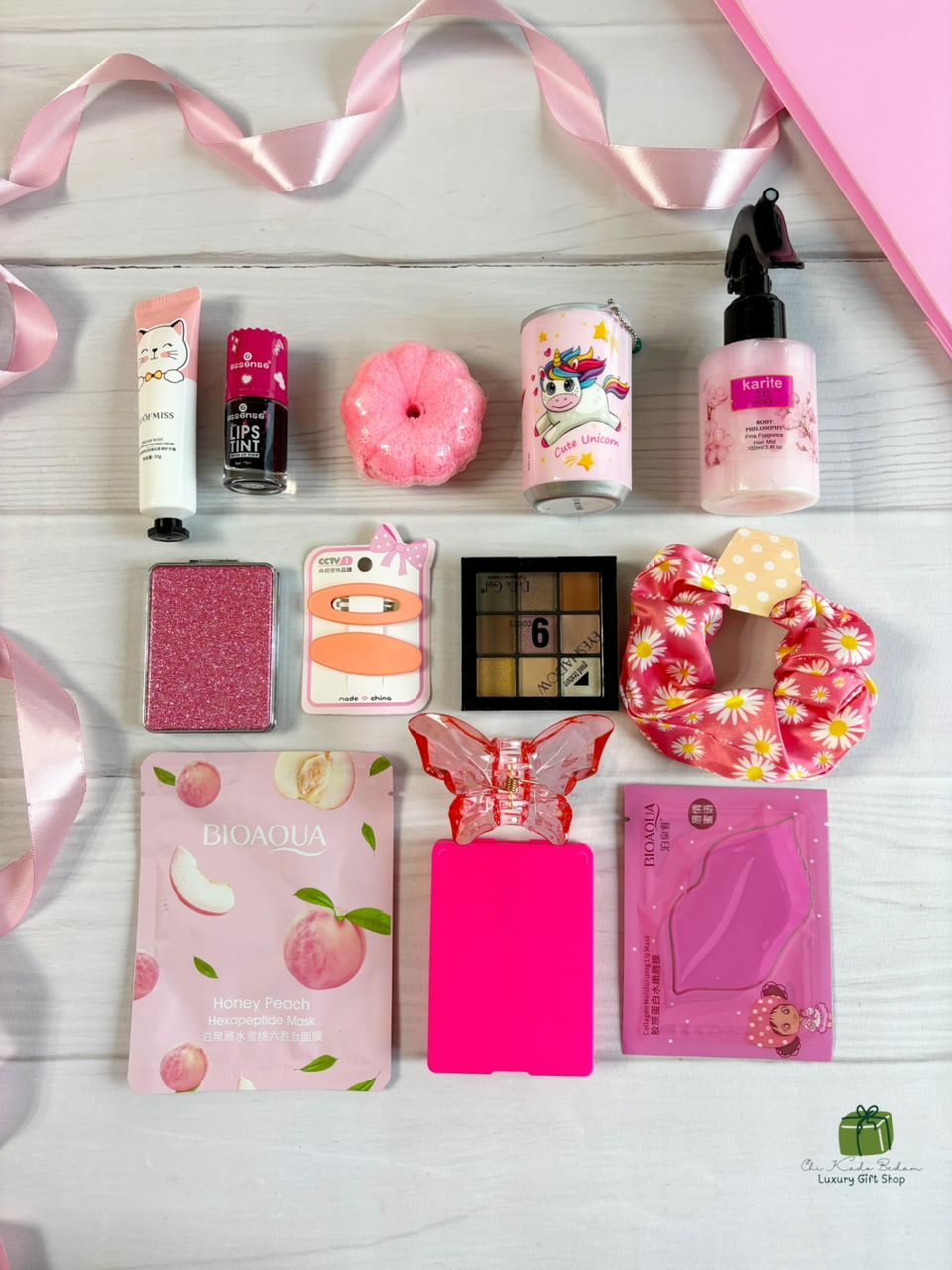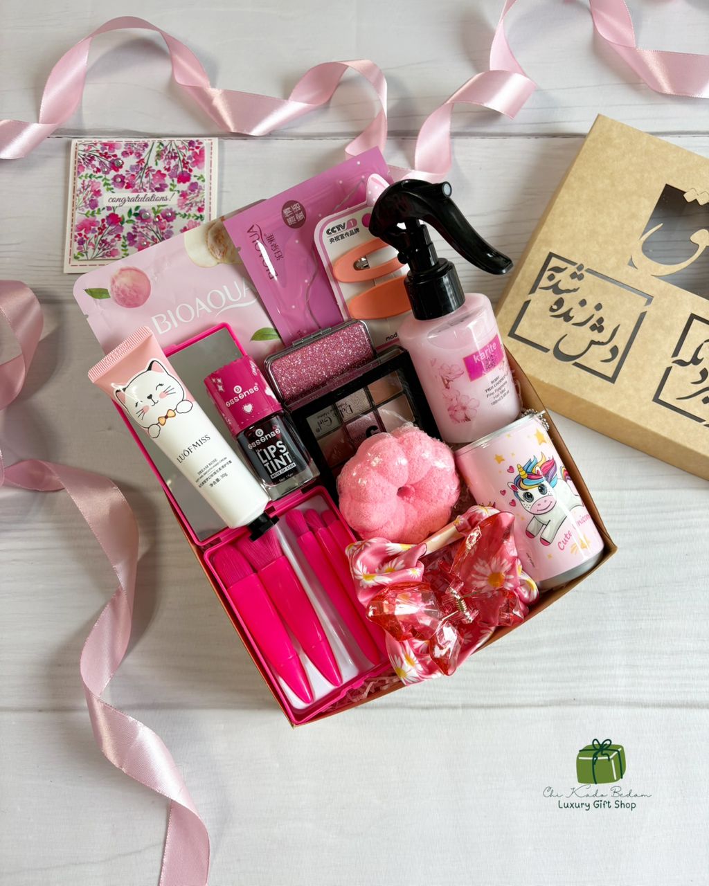 این باکس هدیه دخترانه صورتی پر از وسایل کاربردی و فانتزیه که با دیدنش هر دختری ذوق میکنه! 🎀