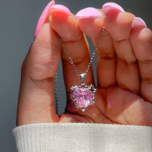 گردنبند و پلاک استیل طرح قلب صورتی بهمراه جعبه و بگ کادویی